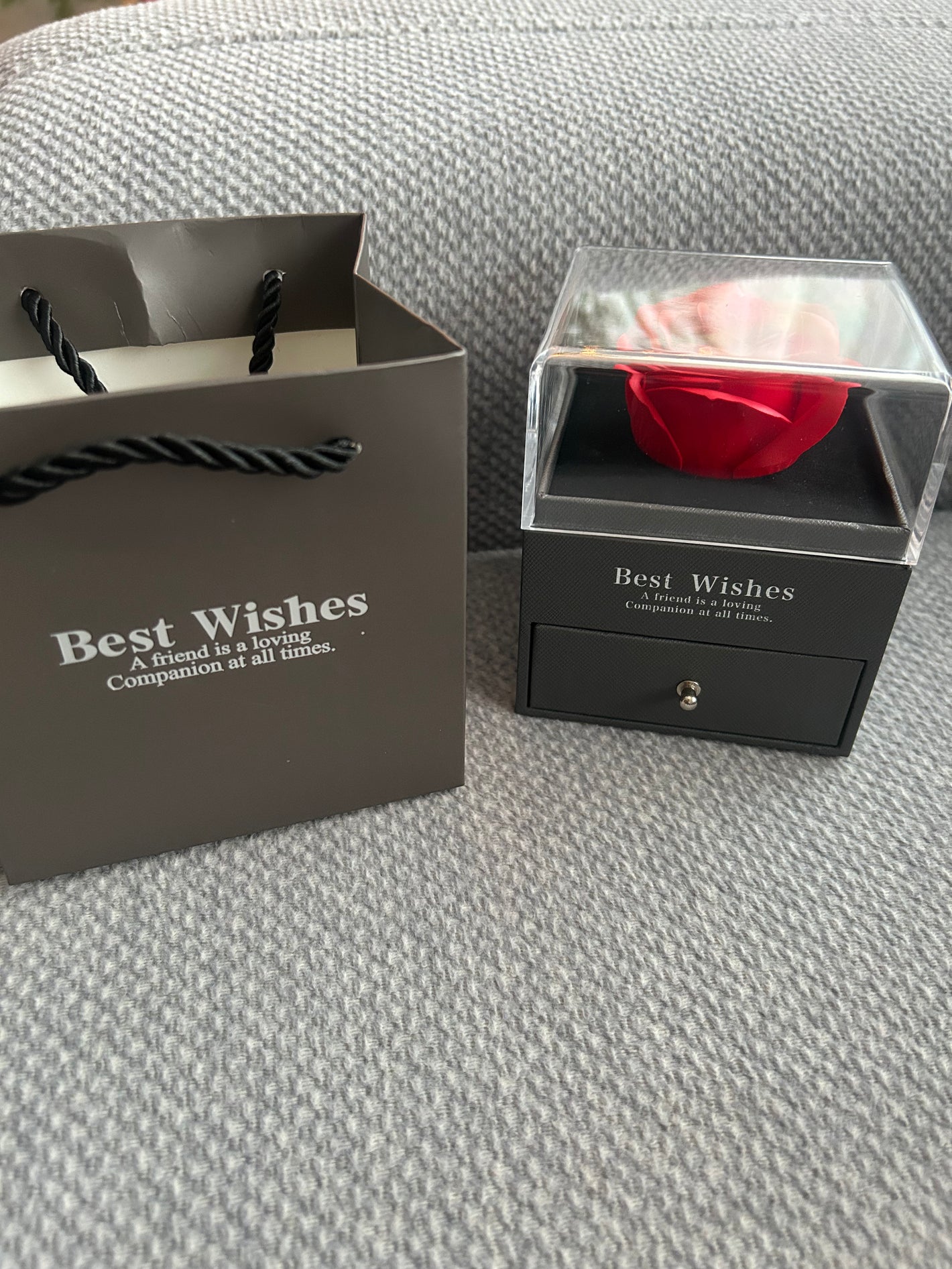 Połączenie serca, róży i eleganckiego opakowania czyni ten zestaw idealnym prezentem walentynkowym, który wyraża miłość i zaangażowanie.